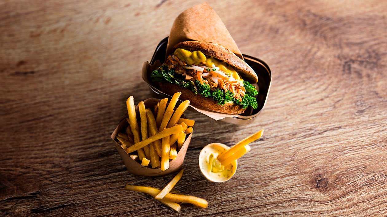 Rebitava jäneseliha (või kana) ning redisesalatiga burger