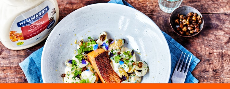 Šiek tiek salstelėjęs salotų padažas su medumi ir netikėtu aštriu visagrūdžių garstyčių prieskoniu. Jo skonis yra tiesiog tobulai subalansuotas, o jį papildo įdomi tekstūra. Padažas puikiai tiks bulvių salotoms – tiek klasikinėms, tiek labiau ekstravagantiškoms, pavyzdžiui, papildytoms rūkyta lašiša, vištiena arba vegetariška augaline kumpio alternatyva. Šių salotų receptą rasite čia.